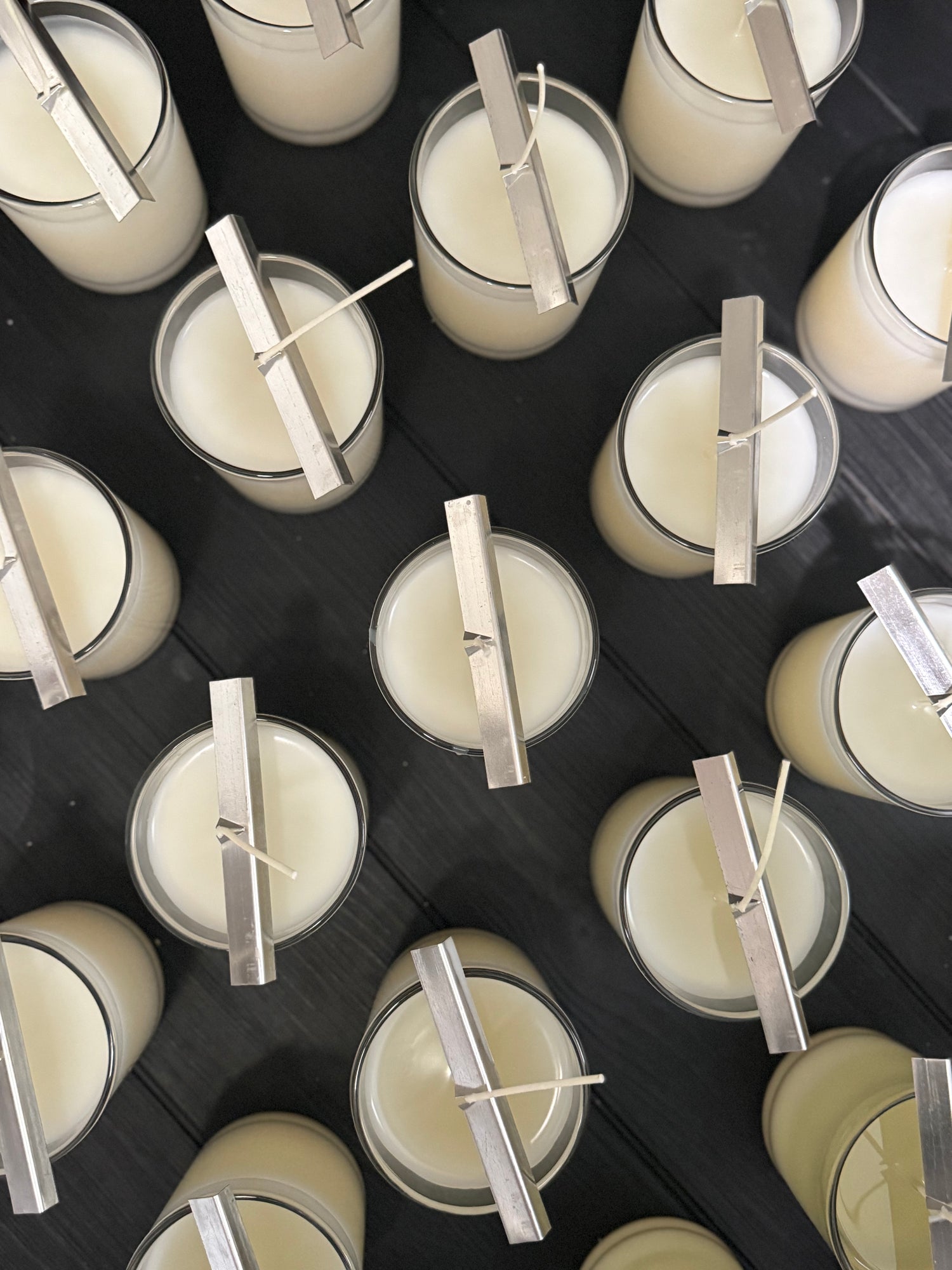 Our candles are poured with a sustainable soy coconut apricot wax blend. This slow burning, low soot wax is made from some of the most renewable resources on the planet. This blend best allows for an even melt, a long steady burn and a richer, fuller fragrance experience.