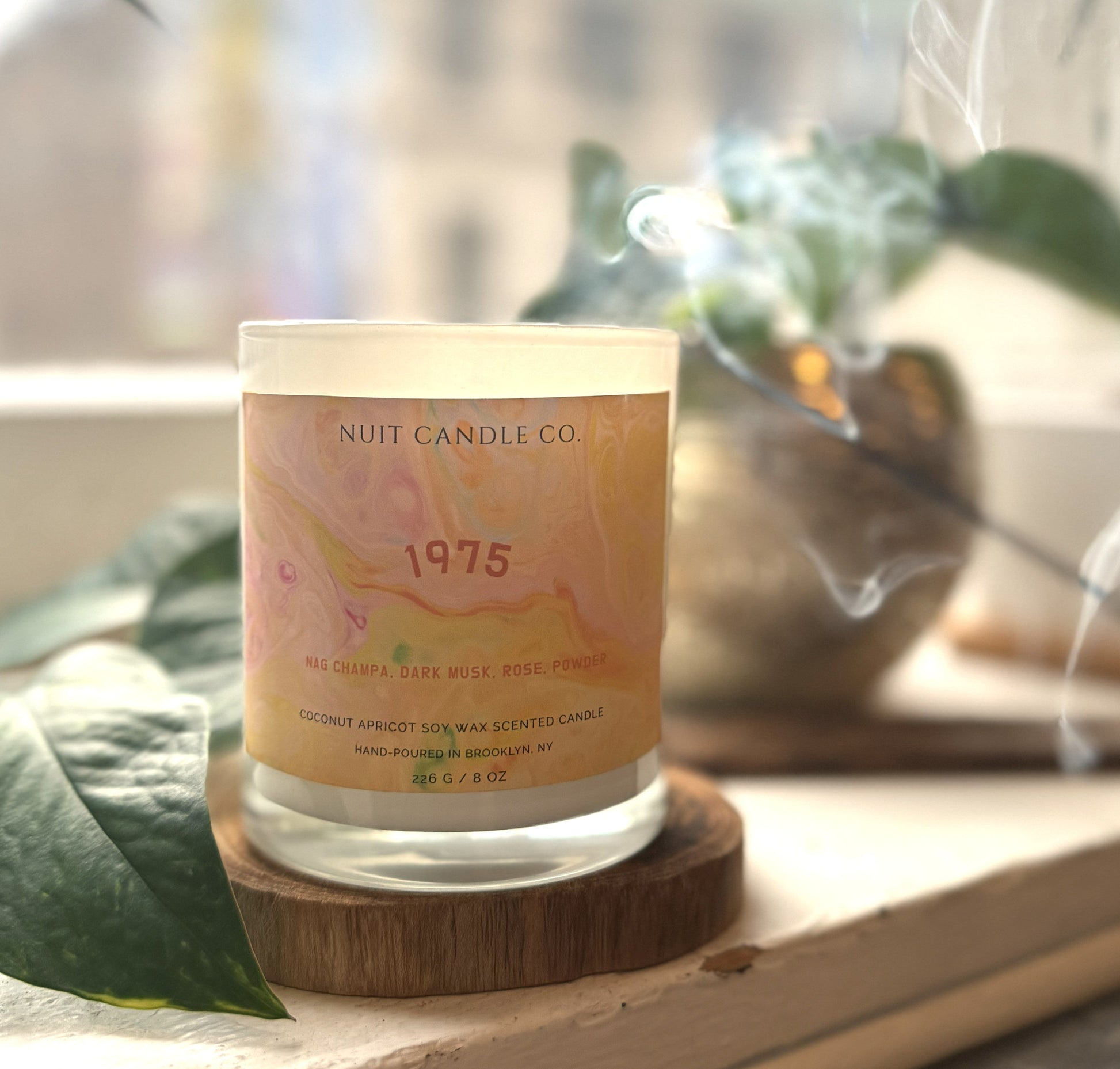 Smells like: 1975 baby. light up and imagine stepping through a beaded doorway to a haze of nag champa scented incense, stacks of vinyl and warm light.